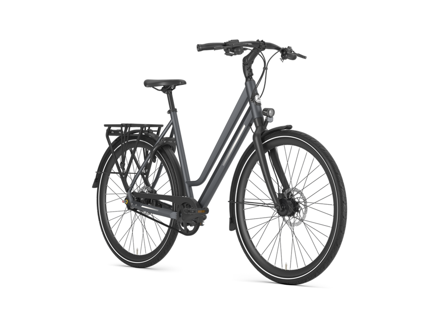 Sportlicher und leichter Aluminiumrahmen mit einem Sattelrohrwinkel von 71,5 ° und einem Steuerrohrwinkel von 70,5 °. Der schlanke Rahmen und die integrierte Verkabelung verleihen dem E-Bike ein elegantes, luxuriöses Erscheinungsbild.